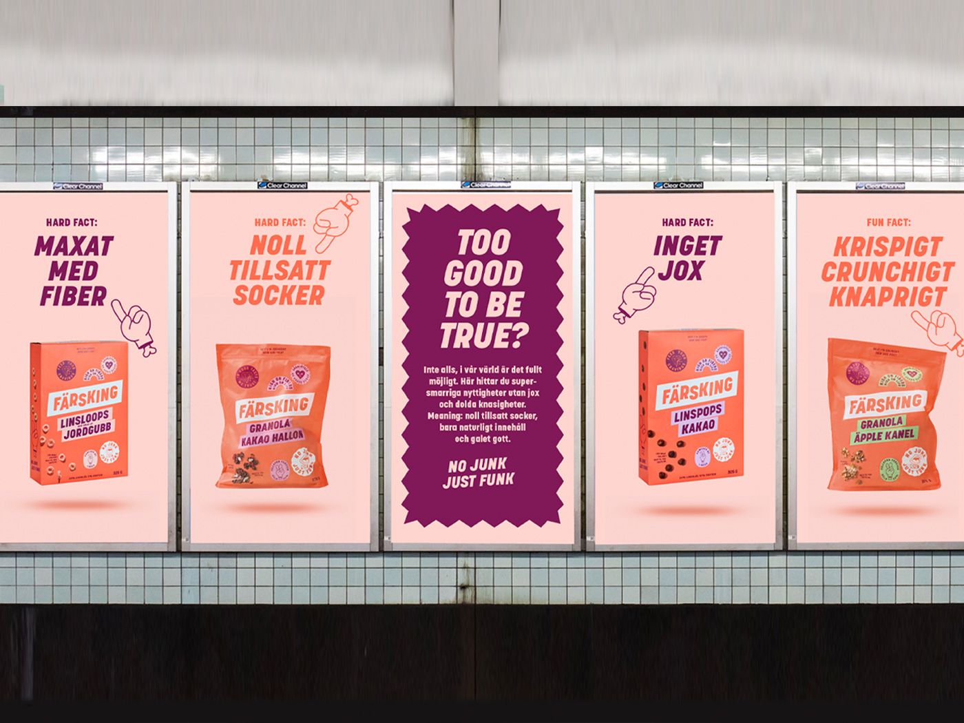 Brand world, logotype, visual identity and packaging for Färsking – the tweenie cereal brand set out to fight sugar in breakfast bowls all over the nation.