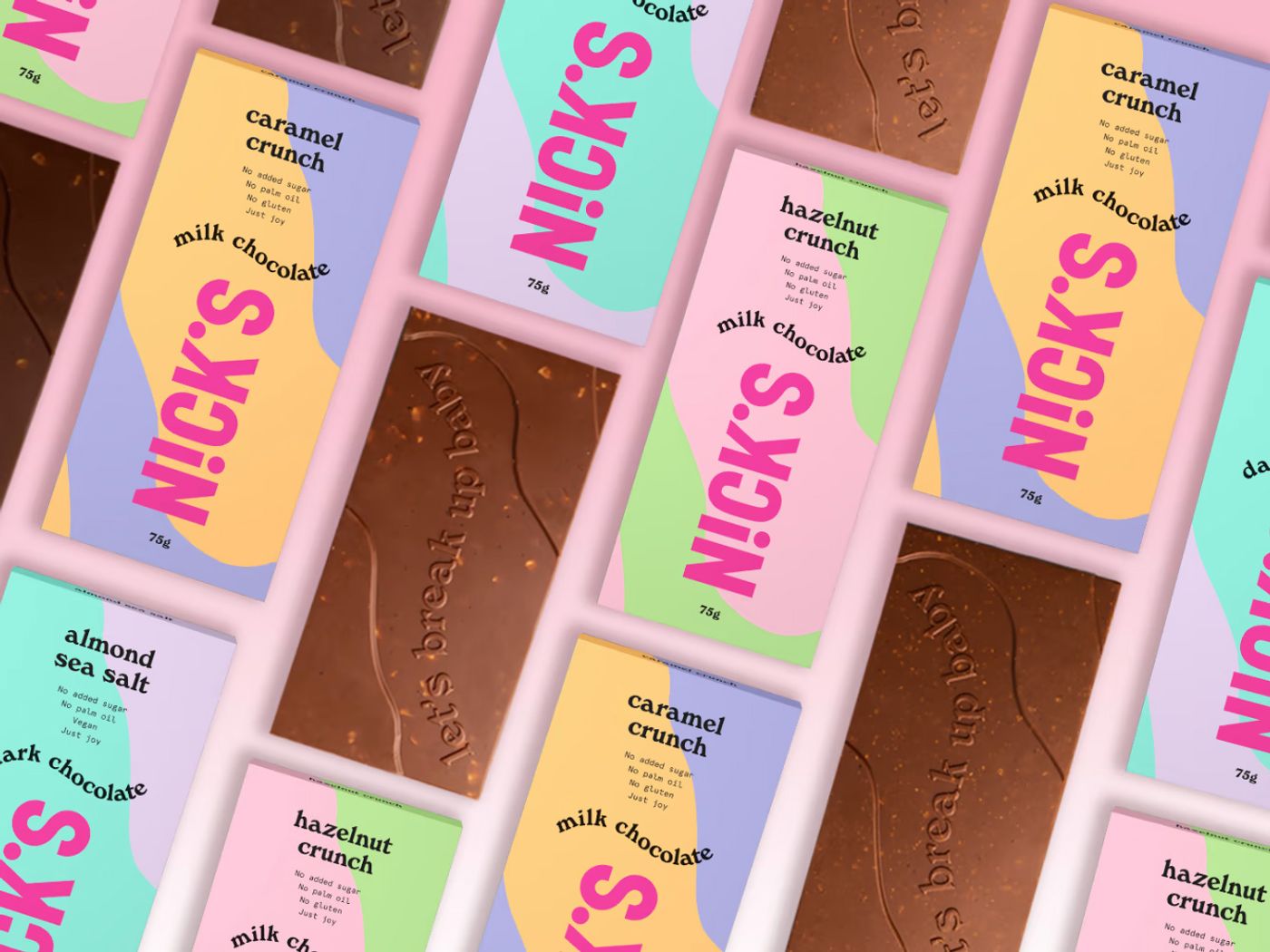 Rebranding including visual identity, pattern, packaging and communication concept for Nicks – the no-sugar-just-joy-candy-brand.